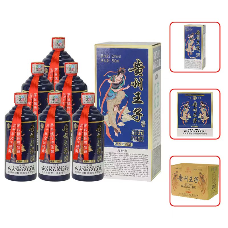 贵州王子海外版53度酱香型白酒【500ML*6瓶】