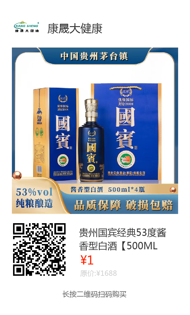 贵州国宾经典53度酱香型白酒【500ML*4瓶】