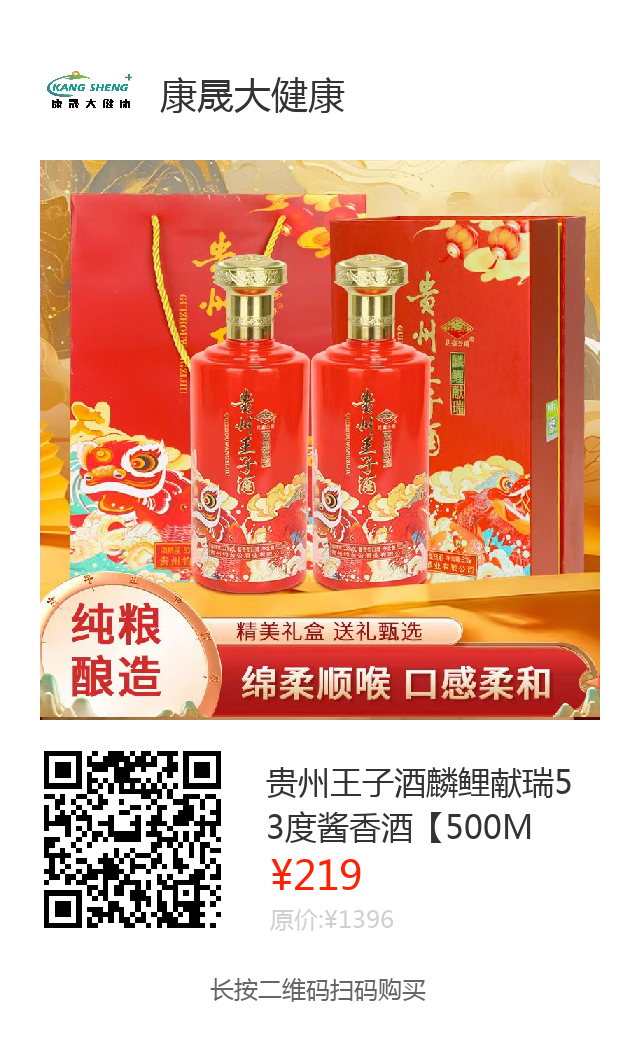 贵州王子酒麟鲤献瑞53度酱香酒【500ML*2瓶】