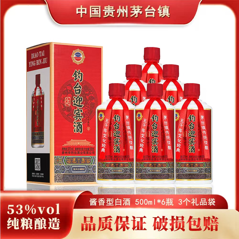 钓台迎宾酒53度酱香型白酒【500ml*6瓶】