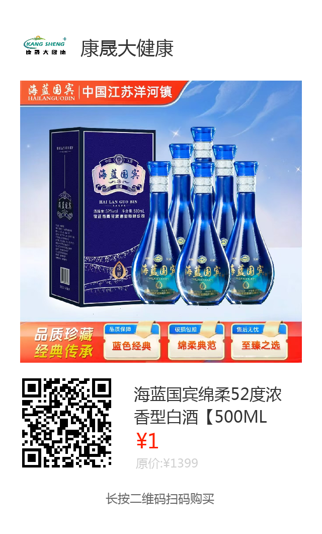 海蓝国宾绵柔52度浓香型白酒【500ML*6】