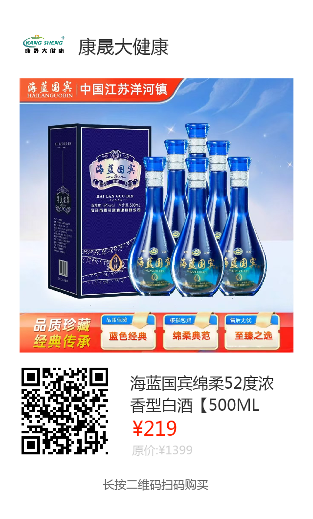 海蓝国宾绵柔52度浓香型白酒【500ML*6瓶】