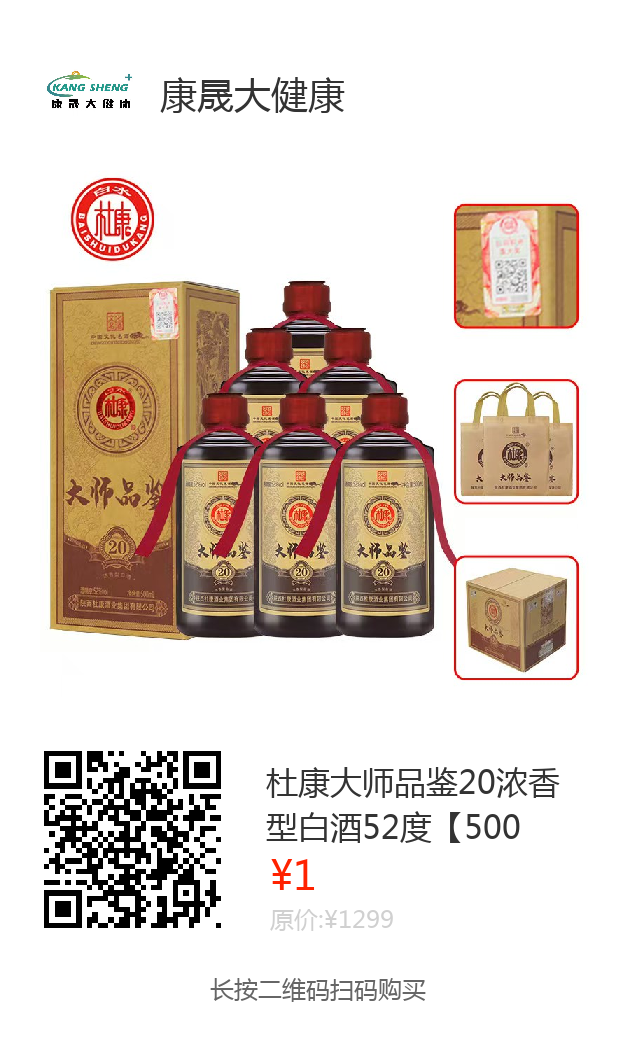 杜康大师品鉴20浓香型白酒52度【500ml*6瓶】